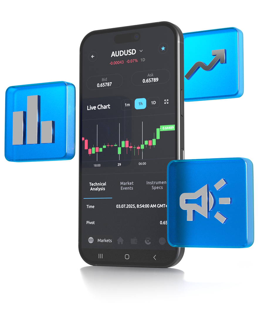 Set notifications for price movements across your favorite forex pairs, indices, commodities, shares, and more.